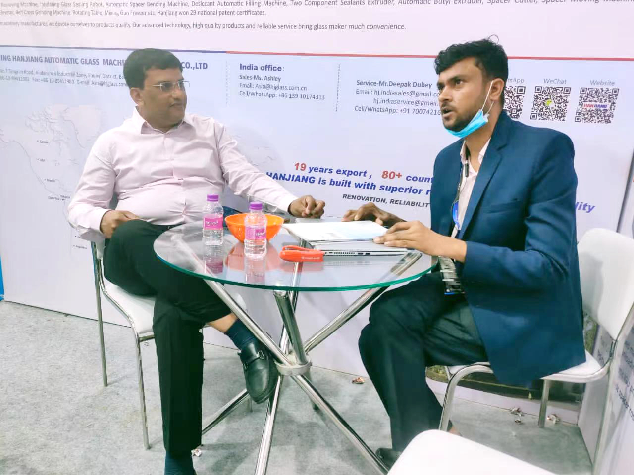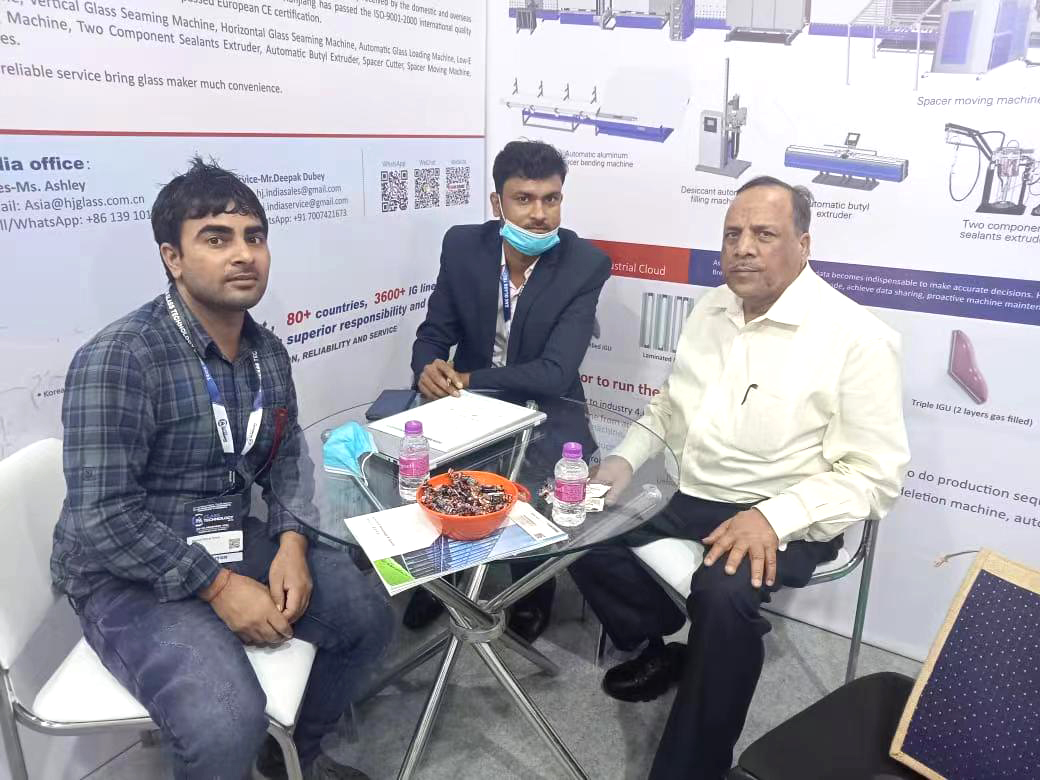2. 全自動(dòng)化中空線的全面技術(shù)講解:雖然該配置在印度市場(chǎng)還很“新”,但我司致力于將最先進(jìn)的技術(shù)帶領(lǐng)到世界各地,在展會(huì)上給當(dāng)?shù)氐牟A罴庸S介紹未來的中空玻璃生產(chǎn)方向。此次,韓江也結(jié)合最新研發(fā)的工業(yè)4.0 之云系列數(shù)據(jù)管家系統(tǒng),引領(lǐng)客戶去思考如何巧妙地將傳統(tǒng)型企業(yè)轉(zhuǎn)型為現(xiàn)代化及數(shù)字化工廠。 該主題也在展會(huì)現(xiàn)場(chǎng)帶來了熱議,當(dāng)?shù)乜蛻艏娂姳硎?,韓江的數(shù)據(jù)系統(tǒng)給他們對(duì)中空生產(chǎn)一個(gè)全新的認(rèn)知,越是有經(jīng)驗(yàn)的玻璃深加工客戶越是急于打破傳統(tǒng)的管理模式,對(duì)數(shù)據(jù)共享,預(yù)測(cè)維保,優(yōu)化排產(chǎn)能提出了一系列的可行性方案。