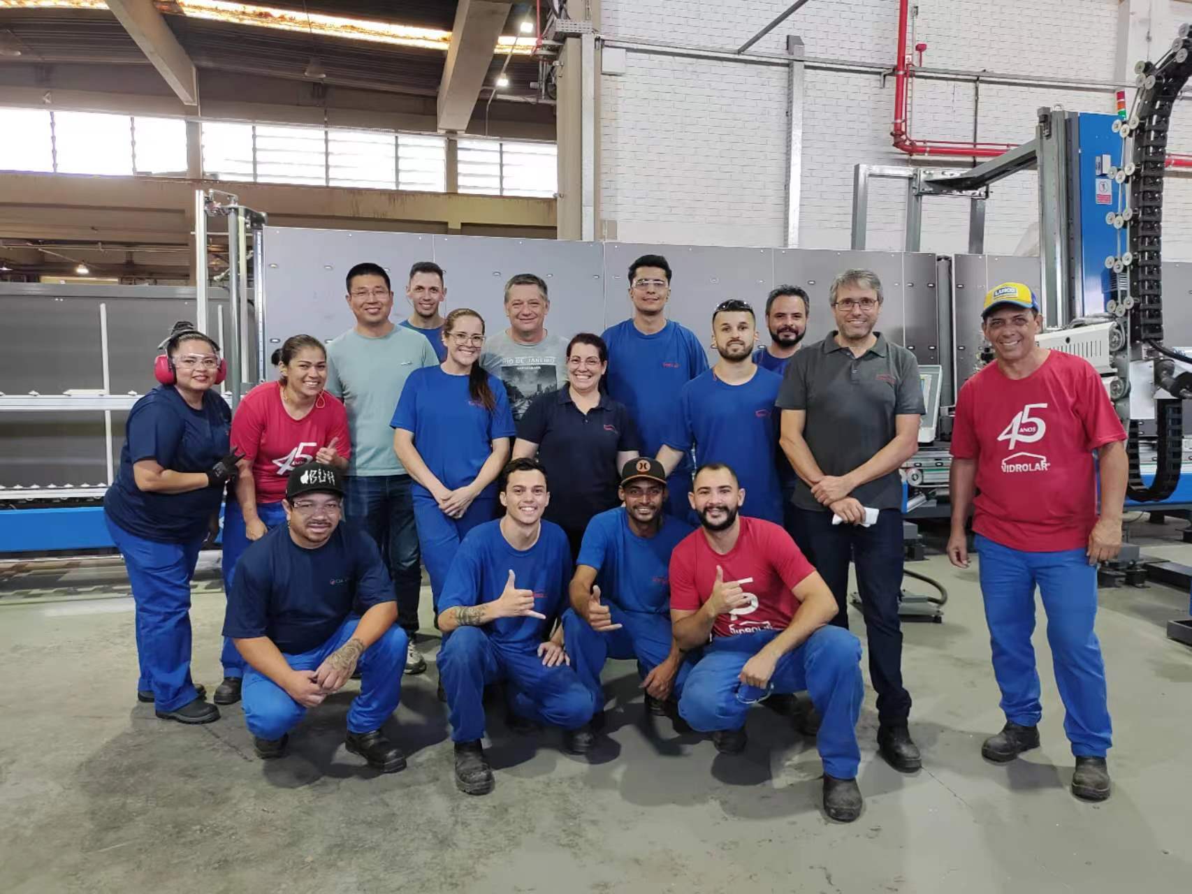 However, realizing this process was with many challenges. Synchronizing the cycle time of every component in a fully automated production line—from loading to unloading, washing to frame assembly, robotic handling of Super Spacer to high-speed Argon gas-filling and pressing, and high-speed sealing—required meticulous planning. Starting with strict calculations during the design phase, followed by production, commissioning, trial runs, and final acceptance, we encountered numerous issues. These ranged from automating the glass loading process and handling different glass rack heights for customers, to preventing glass adhesion during unmanned operations, matching the number of glass racks during loading and unloading, accelerating the robotic arm's speed under full load, and synchronizing the entire line’s speed. Each challenge was overcome through the tireless collaboration of the HANJIANG team and our Brazilian service team-NEX, who worked day and night.